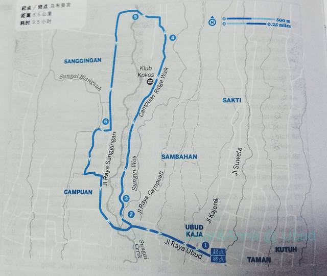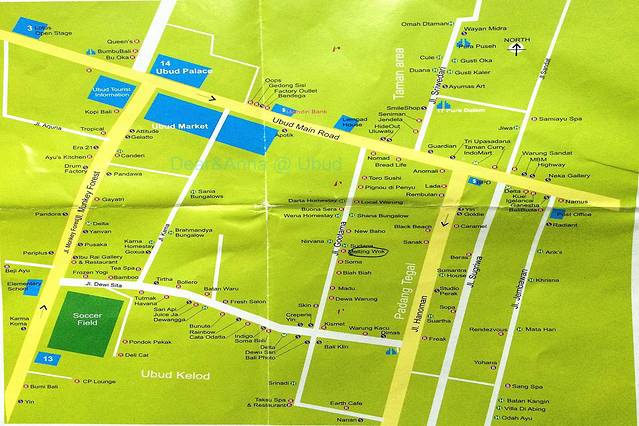 乌布市区厅分布情况,R代表餐厅。我们在市区逛街时就靠这张地图,手机导航经常没有信号。