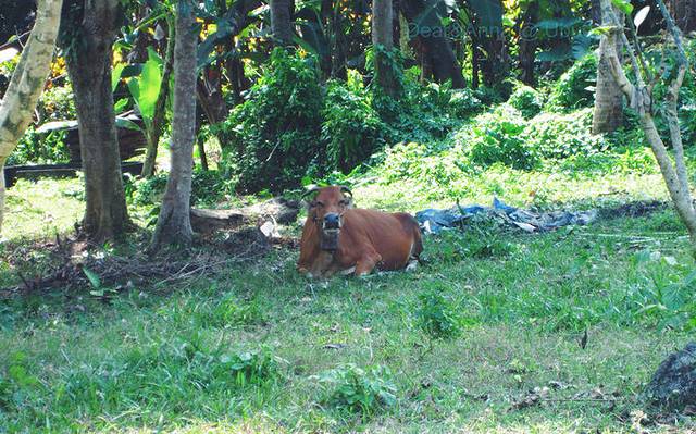 这美好的清晨,沐浴着阳光吃早餐,喝喝茶,看看书,有一搭没一搭和小鹿, Putu聊着天,真是惬意。