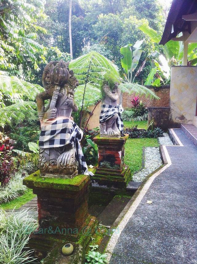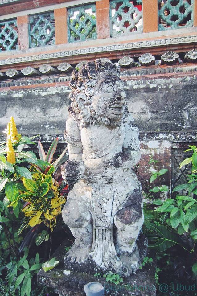 Putu家入口处也有两尊雕像门神Arjuna,门神腰间围着黑白格子的纱笼,这颜色的纱笼也是有讲究,代表着一种“Balance”的精神,和印度教“正邪”均需祭拜的教义相契合