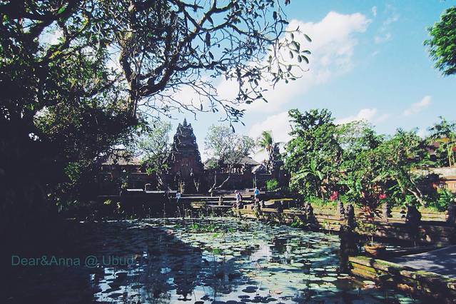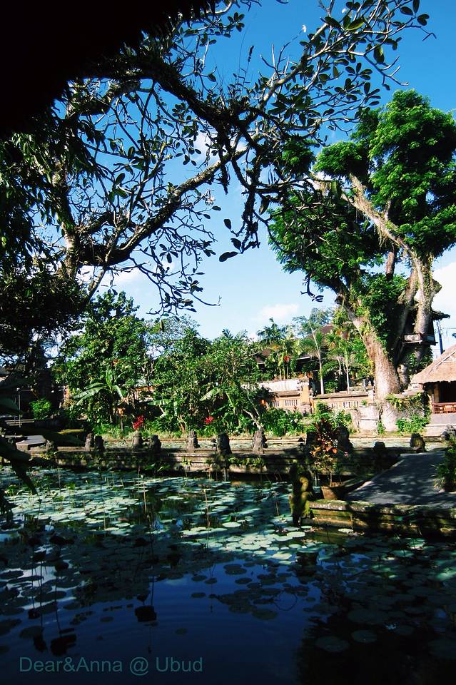 在乌布,当地王室家族居住的在乌布皇宫,其建筑群精美华丽,内部并不对游客开放。在乌布皇宫步行五分钟,即风景秀美的乌布水宫。水宫内部有一个稍大的池塘,开满了莲花,非常适合写生。这里是祭祀Dewi Saras-wati, 代表智慧和艺术的神。