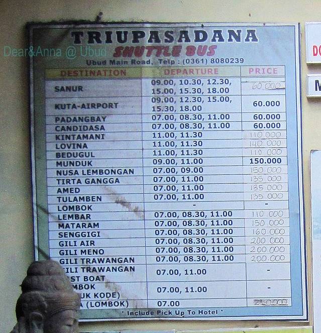 乌布去其他城市需要在街边小旅社买好票,或者让你的酒店老板帮你代买。出发时会在你的旅馆来接你。请一定提早计划时间,约好接的时间不要迟到,否则会被催死,也有可能司机就不等你了。