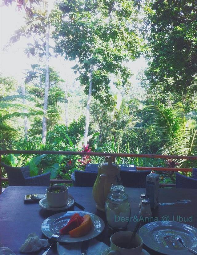 在乌布的这几天,我们的运气非常好,每天都是明媚的大太阳。一大早洗漱完毕,下楼来到客厅,面对丛林而坐,大口呼吸新鲜的被植物洗涤过的空气,听着欢愉的鸟叫声。