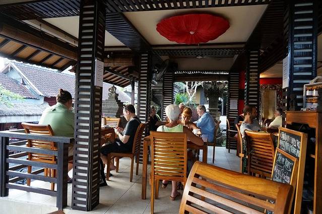 在乌布皇宫所在的JR ( Ji Raya Ubud )路上,餐厅遍布,看到小巷子请拐进去吧,JR路的小巷子里藏匿着全世界的美食, 那里才是美味和实惠的聚集地。创意十足的印尼风味大排档,极具法国风情的咖啡馆和餐厅,酒庄和意式菜肴的完美融合,简洁精巧的日料小店。圣猴林路上的餐厅和酒吧也不少,一定让你眼花缭乱。餐厅的门口都会摆上菜单,不防看过一圈好好作完比较再选择。