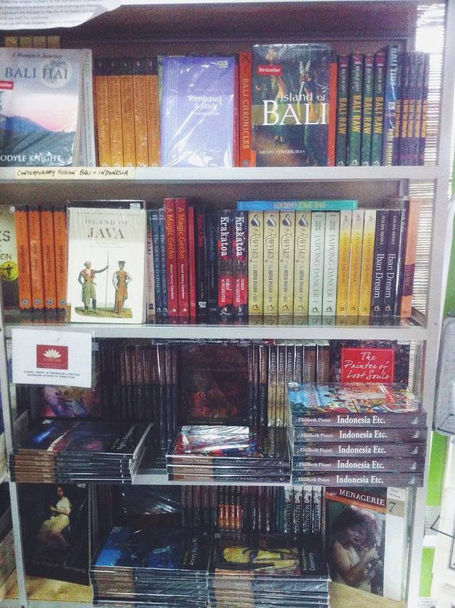 这家是乌布书最多的书店了,我们来过两次,店里有很多英文的小说,国外小说和巴厘岛当地的小说都有,价格比较贵,二手书有也有不少。如果想找英文的旅游攻略,这里也有不少。书店除了卖书,还有许多周边产品,明信片,卡片,小首饰,作礼物或者纪念品很不错。