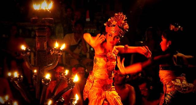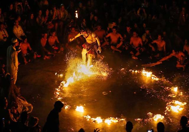 此时,已经有一百多名赤裸上身的当地男人,围坐在露台舞台的正前方,他们盘坐着腿,身子摇曳着,嘴里发出低吟身,整场舞蹈演出,就是他们在用人身配乐,时而低沉时而高昂,让人觉得神秘而新奇。
