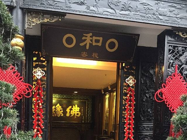 计划是在锦里住下来,可是老公选啊选,实在拿不定主意住哪家好(出发之前此人信誓旦旦的说咱们到那里再选客栈,锦里那么多客栈看着哪家好就选哪家),还好我们娘俩在他选的过程,泡了两个小时的茶馆,也不错。最后还是我拿的注意,走 文殊坊 咱们去圆和圆佛禅客栈,这是一家佛禅客栈,环境清雅,颇有禅意,客栈内设的一景一物都让人感觉与众不同。晚上的第一餐,诺爸就请我们吃文殊坊 清水荷花的禅茶素食。