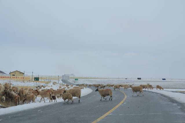 路上遇到很多羊群,然后羊屁股上会有不同的颜色,应该是用来标记和别人家的羊群区分开来吧