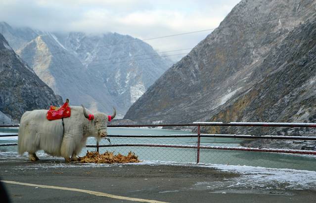 一路上若能遇到些车辆,基本都是这样的大卡车,开的极为缓慢,很多上坡路段便见司机下车开始给车轮装上防滑链,不然便无法爬坡,待到平地时,再卸下防滑链,同时也遇上很多大小车祸,都以大卡车为主,感叹司机们的艰辛和不易啊