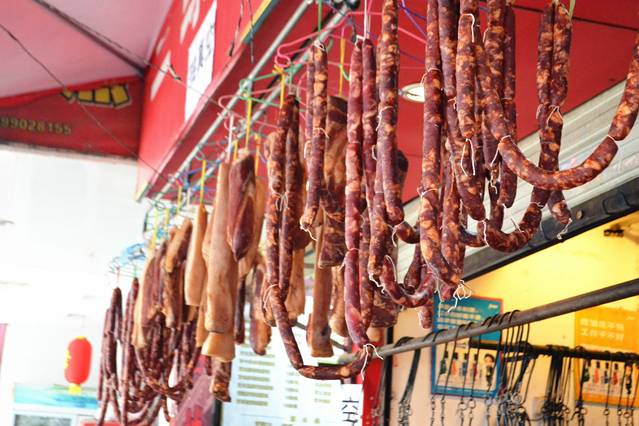 这个香肠真的好好吃,之前还是刚才成都那土著——庄庄——就带来给我们吃过她自己家秘制的香肠,一直念念不忘那个味道,没想到在这家饭店居然尝到了一样味道的,所以,没吃完的我们也打包带走,后来在自驾的途中,虽然冷冷的,还是被我们吃的津津有味