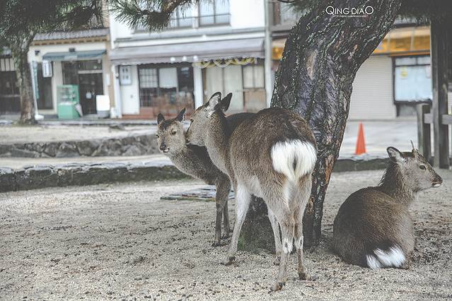 船靠岸后从码头出来就是一片广阔的地方,会看到很多鹿在悠闲的逛着,纳尼?鹿不是奈良的特色嘛?原来宫岛上面也有,不过为啥我觉得像傻狍子?