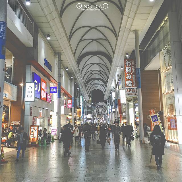 本通,这里是广岛市中心的一条步行街,顶上设计有点欧式,人流也比较多,步行街上以服装店、餐厅、咖啡厅为主。