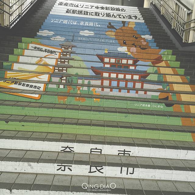 奈良地铁站出来的楼梯就设计了很大一幅画宣传画,当然奈良这里也有很多以鹿开发的周边产品,无论是吃的还是用的,应有尽有。