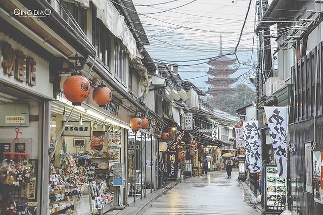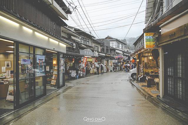 路过一片广阔区域后就是宫岛的主商业街了,这里销售着很多本土的特产和手工艺品,当然餐厅也是必不可少。