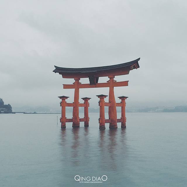 宫岛的标志性建筑已经映入眼帘,说明船快靠岸了。