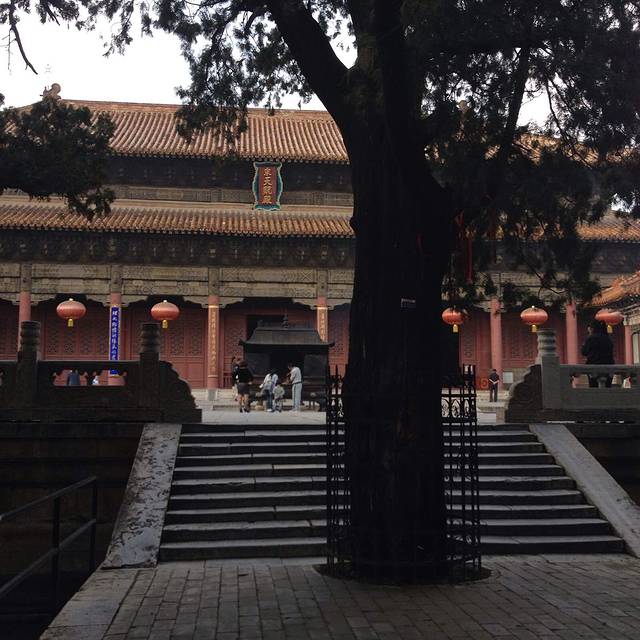 宋天贶殿,“无事不登三宝殿”之一。据说,当初规划此殿时,这棵树还是个苗苗,后来造完了,觉得存在也是个生命,就木有砍掉...... 真的在大路中间啊!很正~但不突兀,很和谐~