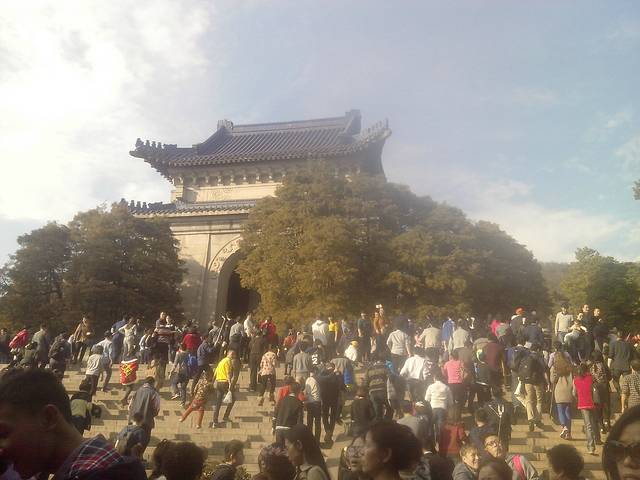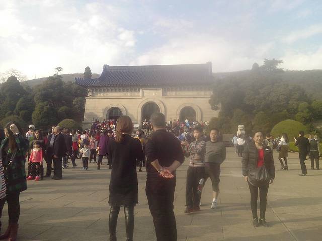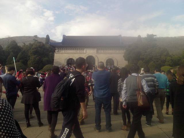 山陵,到了中山陵景区车挤车,人挤人,只能把车停在路边