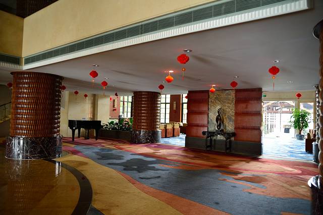 湖泉酒店位于弥勒湖泉生态园内。生态园是一个人工造成的湖,在2000年落成,这个湖给弥勒人民带来了无数的欢乐和商机。依靠着这个湖,湖泉酒店落成,优美的外部环境、良好的硬件设施、贴心的服务,使得湖泉酒店成为国内远负盛名的星级酒店。在酒店住宿可以免费泡温泉,放下行李我们就直奔温泉去了。园区内有很多电瓶车穿梭其中,把住店客人拉到要去的地方,我们坐着电瓶车去到温泉。