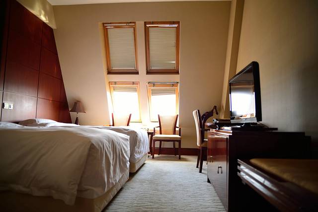 房间订的楼顶的普标。湖泉酒店的楼顶是斜顶式的,采光很棒,有点欧式风格。
