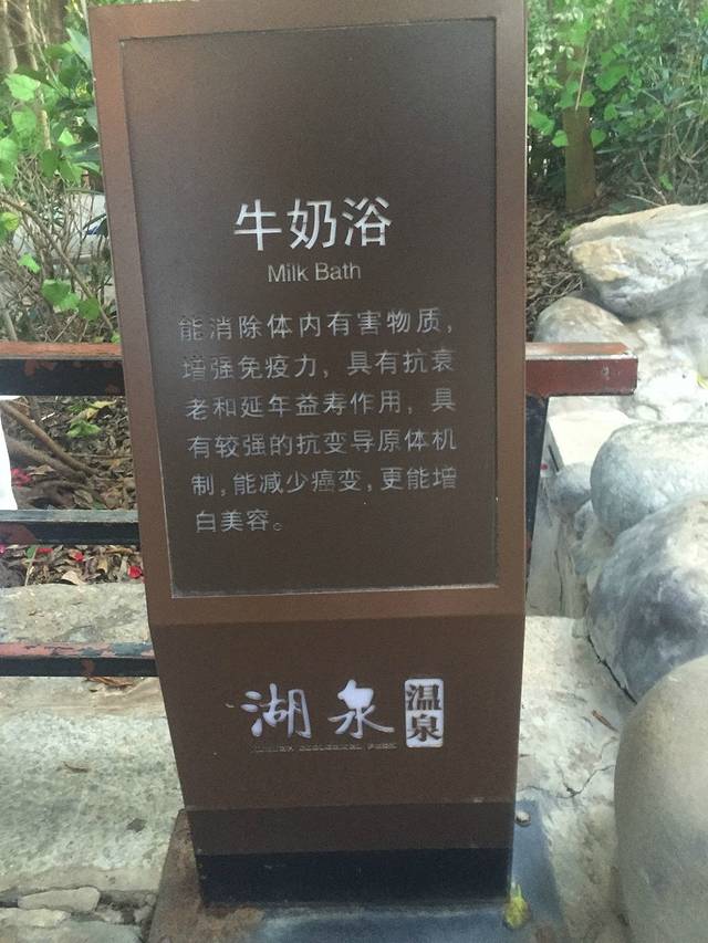 来之前我查了一下,弥勒的温泉是碳酸温泉。百度上说,在泡碳酸温泉时,碳酸气经皮肤进入体内,刺激毛细血管扩张,引起皮肤充血,使内脏血液流向体表,从而减轻了心脏的负担;同时,又能增强静脉张力,促进静脉血液向心脏回流,对心脏是一种锻炼因素,还有力的促进了血液循环。碳酸泉浸浴时,二氧化碳气从呼吸进入肺部,使呼吸变慢变深,并从肺部排出,增强了肺的气体代谢,有助于机体的酸碱平衡。