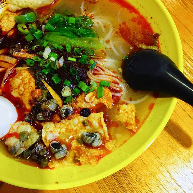 随便找了一家吃螺蛳粉,好吃~~但由于宝宝加了太多的辣椒酱,辣得我不要不要的