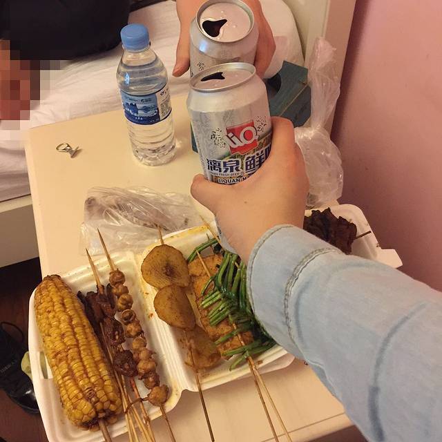 逛完西街后买了烧烤和啤酒回酒店,啤酒和烧烤才是绝配啊~
