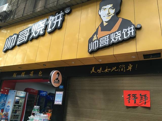 下山后有一条小街 估计是湖南大学的一条小吃街 有很多 这个帅哥烧饼 早就听说过 一直想看看帅哥的真面目 可惜过年回家没开门