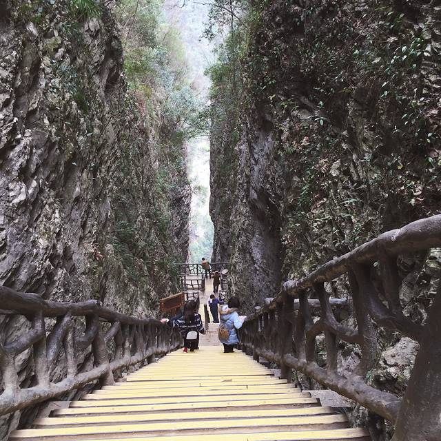 途中会经过很多景点 三叠游道平台 吴王坡 石壁裂缝 千年古藤等 在赞叹大自然的鬼斧神工的同时 双腿下楼梯已经发软打颤了