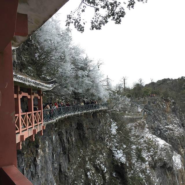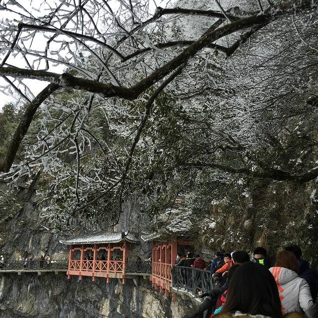 上去以后觉得排四个多小时的队是值得的 来的前一天下了雪加上山顶温度较低 树上山上都有积雪 (路面上也是 有些地方特别滑 走路要小心)相机是照不出人眼所看到的景象的 真的是很美