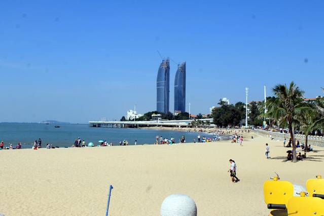 起个大早就上沙滩了 曾厝安公交站都有公车到达厦大白城 厦门很多公交都全程一元 很不错