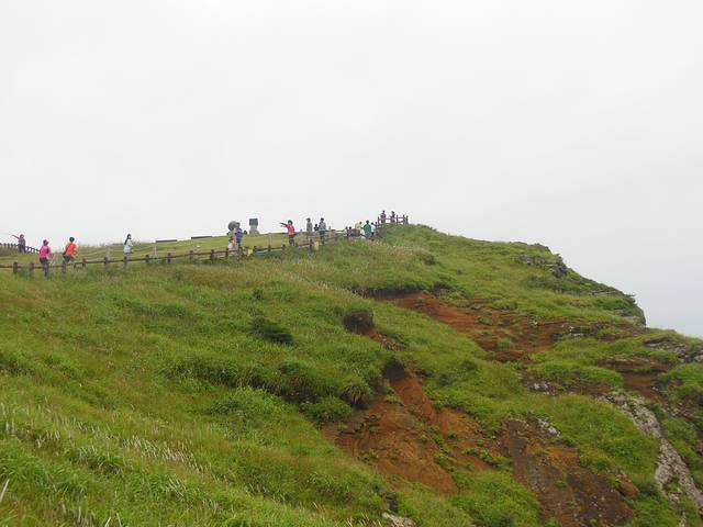 虽然看不到日出,可这标志性景点还是要看一圈的。酒店出来几百米就到山脚了,我来的早,大批旅游大巴还没有到,这个时候爬山的都是自由行的人和本地人。日出峰不高,半个小时就到山顶了,山顶是一个巨大的火山口,会再爆发吗?是不是我多虑了。