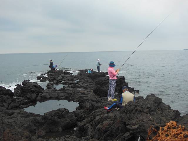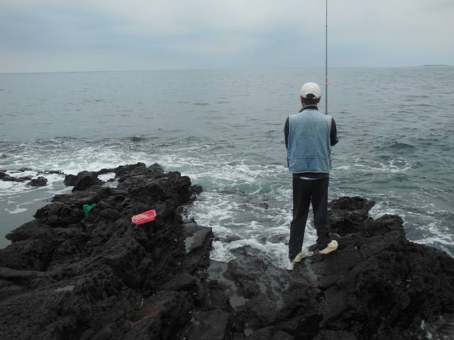 韩国人喜欢自己钓海鲜,一路随处可见三五成群的人钓海鲜。这位穿背心的大叔很热心的和我交流,可惜语言不通,只能简单的交流几句。