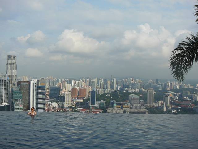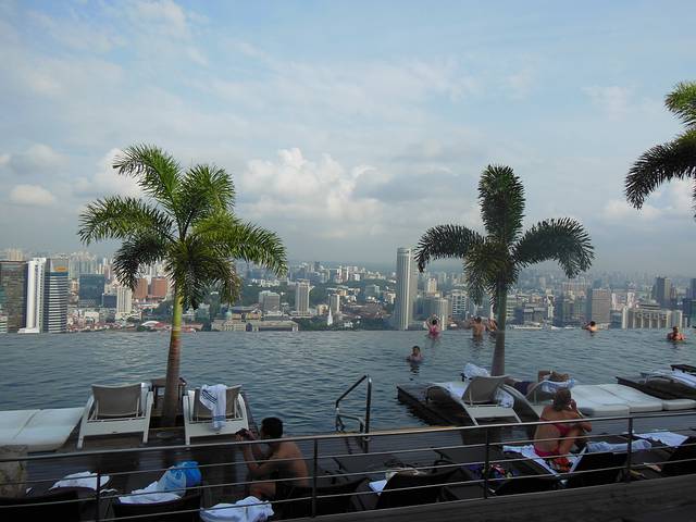 前一天晚上3点多才入睡,第二天起的有点晚,入住滨海湾金沙酒店,就是要体验一下屋顶无边泳池。二号不说,起床收拾好,穿上泳衣,直奔屋顶。