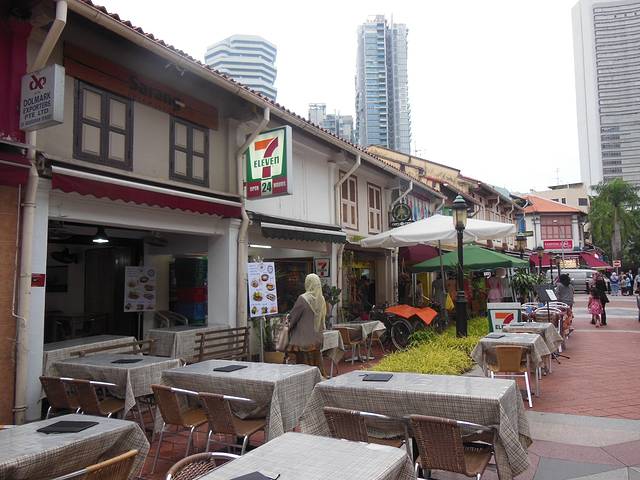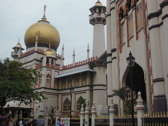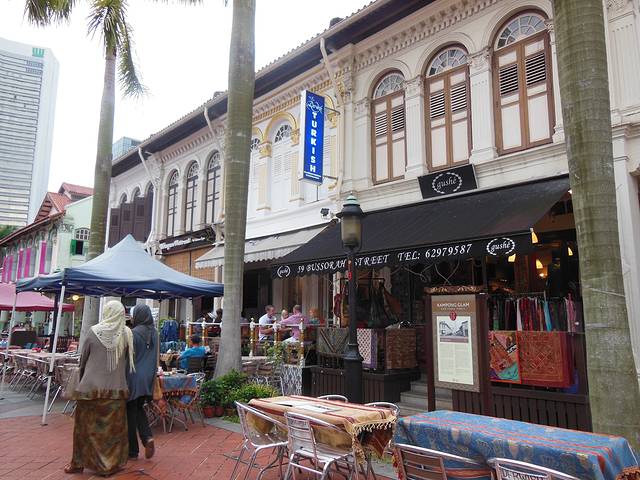 苏丹旧王宫,曾经皇族的宫殿,如今是回教堂和博物馆,进去参观需要脱鞋、洗脚。这里是马来文化的扎根点,周边很很多马来人开的服饰店和餐厅,傍晚开始很多人坐在露天桌前吃饭聊天小聚。