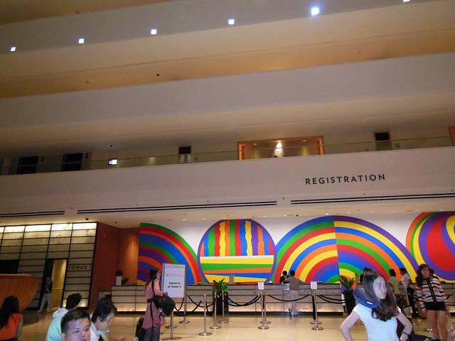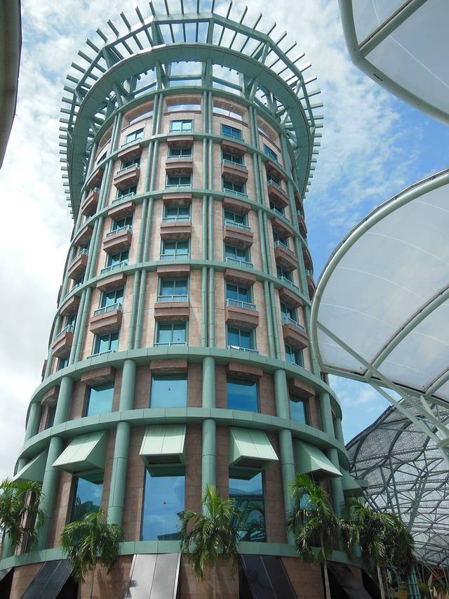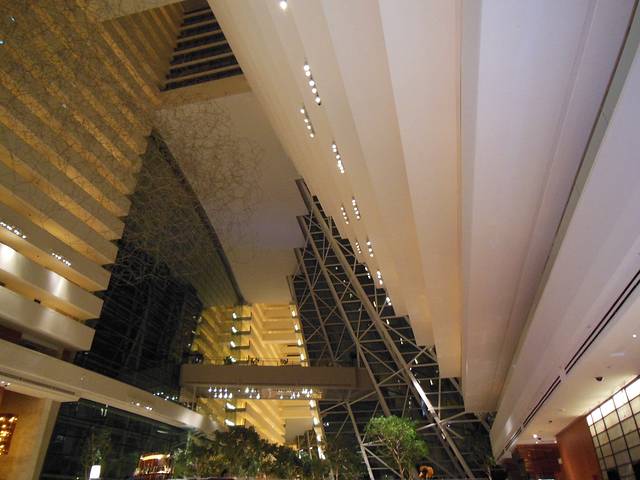 禄口机场直飞新加坡樟宜机场,由于空中管制,晚点,一直到晚上10点多才到樟宜机场,入境、等行李,到酒店已是11点多了。在酒店大堂办手续时又折腾了好一段时间,已是疲惫不堪,于是只匆匆拍了几张酒店内部照,因为自己是建筑行业的,所以对这么一座酒店还是很感兴趣的。