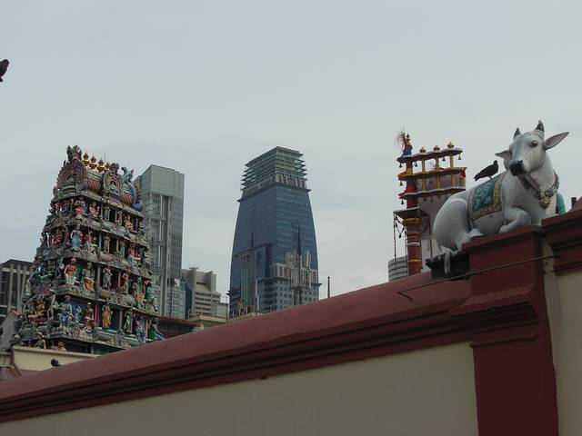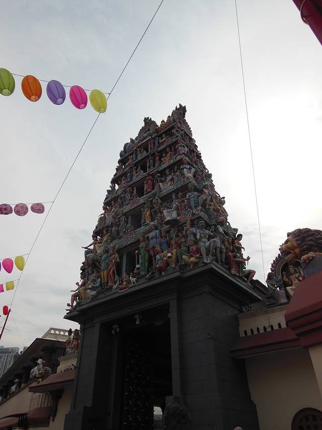 沿着牛车水的主路走到尽头,有一座非常漂亮的庙,非常漂亮的颜色和雕塑,栩栩如生,惊讶于人类的艺术,进去参拜需要拖鞋,本着对神灵的敬畏,在里面没有拍照。新加坡是很干净的城市,路上灰尘很少,即使光脚走一圈,也不会很脏。