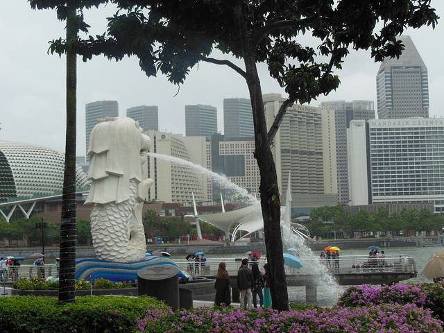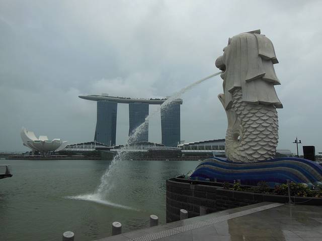 鱼尾狮,是新加坡的标志。鱼尾狮的对面是滨海湾金沙酒店,是不是很壮观!