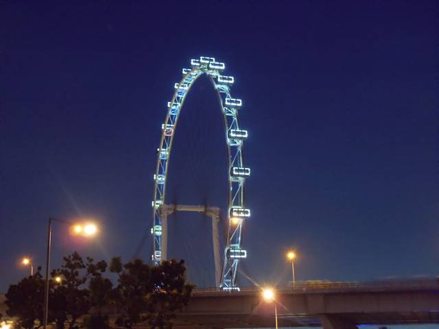 只能随便找家填饱肚子,转向摩天轮。到新加坡怎能不坐摩天轮,可以观看整个新加坡夜景,尤其是从最高点往下时,美丽的夜景尽收眼底。