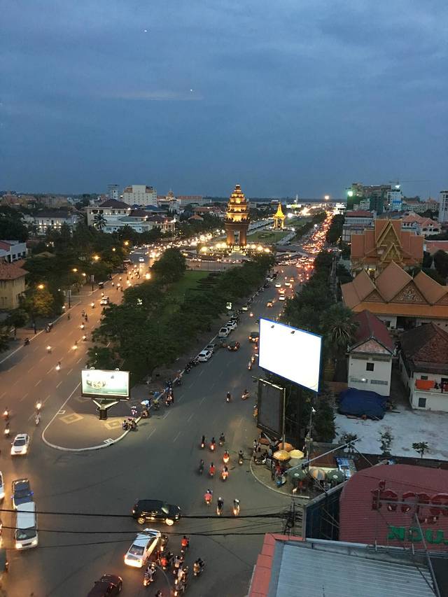 香港停留后就会到达柬埔寨的首都-金边 是柬埔寨最大的城市 其实跟中国的三线城市差不多 但是街上的卫生什么的都很好 而且当地人对游客都非常的热情 在大皇宫外面的草地上随时都坐着很多人可能它们时刻都在崇拜着他们的皇帝吧hhhh