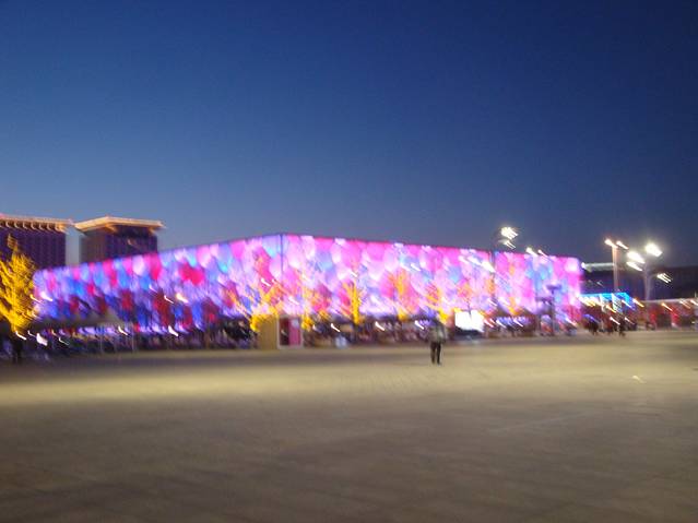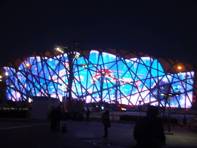 从什刹海坐地铁到了鸟巢,夜色中的鸟巢和水立方美艳动人。