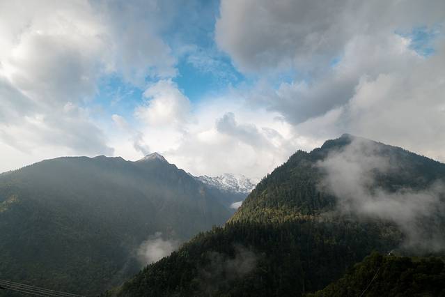 原本和要走尼泊尔的哥们打算在飞来寺多呆一天捡人包车去盐井,没想到一大早首先是被大雨吵醒,卡瓦格博的真容依旧不愿意出现,估计此行想一睹日照金山的景色只好期待下次的归来。接着一个电话说有车到芒康中途把我们丢盐井这个鲜有人来的“旅游胜地”我和小伙伴就匆忙的上路了,话说回来其实我不是蛮喜欢这种雨天出发,一来214的景色要差太多,二来危险程度也必然的增高不少。