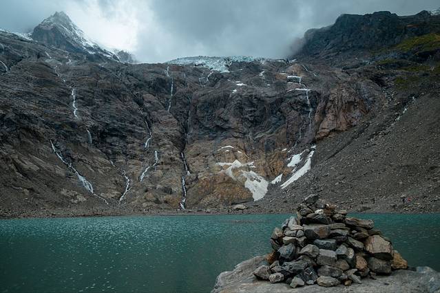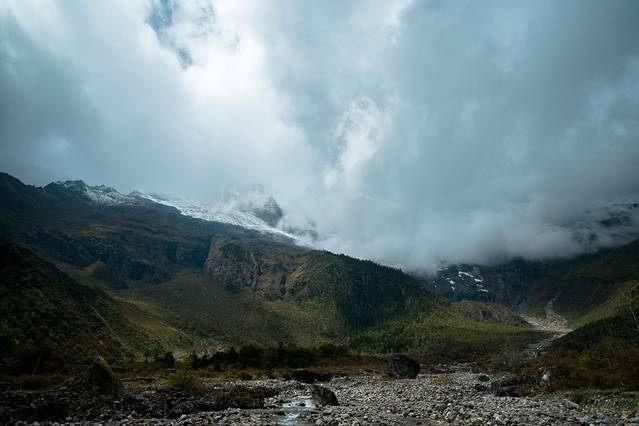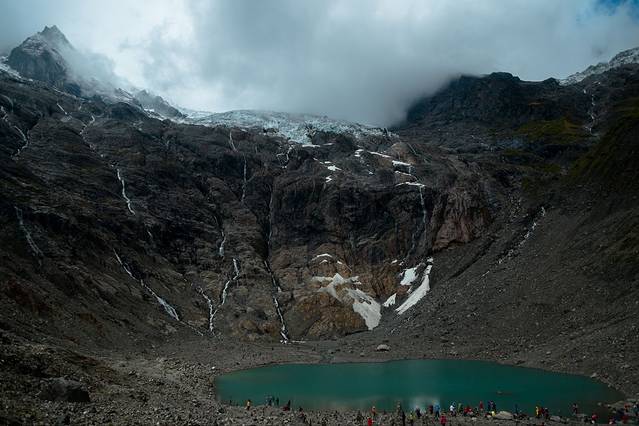 经历昨日一战之后,机动背包在身上都基本毫无感觉了。只不过去冰湖的路依然不是那么好走,拜托刚登陆的蝴蝶台风,整个天气都是这样的糟糕,路面情况更甚。4小时多到冰湖,不算快也不算慢,论景假如不是山脊上那几条分明的雪水瀑布,冰湖个人感觉不如06年在落绒牛场见到的那些个高山湖泊。
