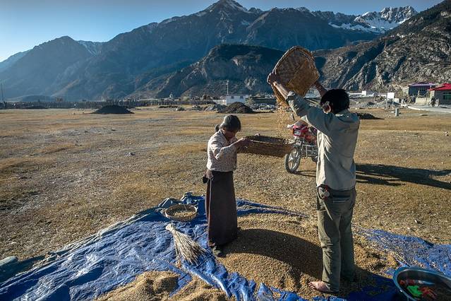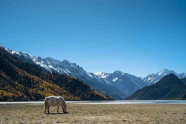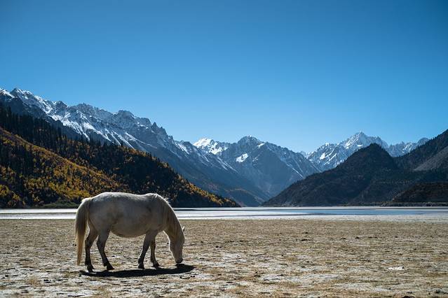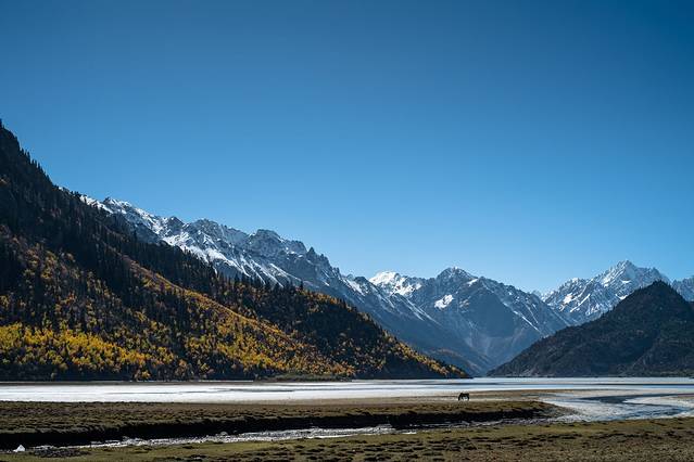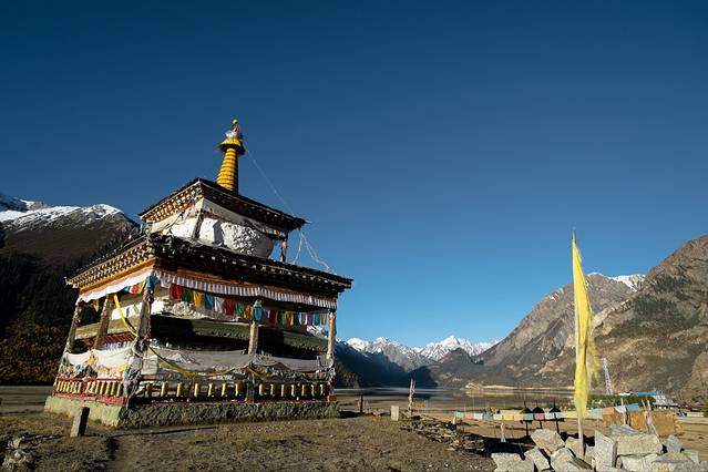而我一到然乌就被震撼到了!真的是震撼到了!比当时去盐井的感觉更甚,一片藏民农田被湖水环绕,周围全是雪山,最重要的是压根就没几个人停留这里(虽然比盐井多多了,相对而言大部分都去波密而没有停这里),瞬间被充满满满的拍摄的欲望。