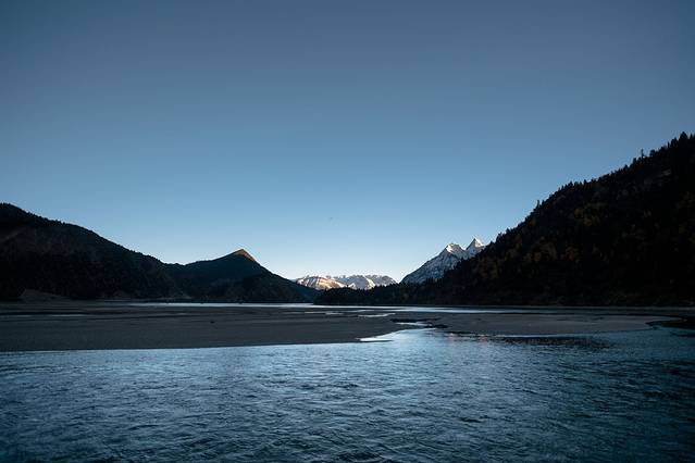 快到太阳下山的时候一个小伙伴叫我一起去上然乌湖,我们没有发现有明显的路没但顺着电线杆走经过各种跋涉我们还是在太阳落山之前到了上然乌,基本就是个无人区,但是当我看到夕阳西下斜射在远处雪山上近处的湖水如同镜子一般的时候那种满足感是没法形容的,甚至都不care今晚能不能洗澡了,随便一按都是一幅画的感觉……前几天我一天下来不过50的快门而今天一下午就干掉了上百。