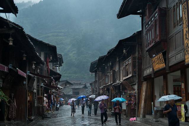 与阿明坐K109到达凯里,一下车果断被凯里的震撼到了,丫的这一点都不像个小城镇啊,黔东南首府从规模和建设上来说恐怕都不能以“小”来形容了。找了个黑车顺道买了千户苗寨团队票顶着被天兔影响的中雨我俩到了西江。