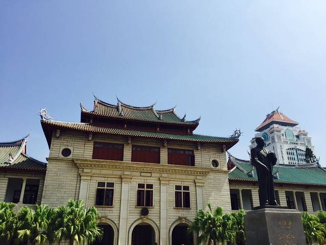 厦门大学的旧建筑多为陈嘉庚先生的女婿所建,清水墙、琉璃顶,极富特色,被喻为“穿西装,戴斗笠”(比喻中西建筑风格结合),尤其是建南大礼堂和上弦场,相当宏伟。校内建有厦门大学人类博物馆和鲁迅纪念馆。前者珍藏了史前时期至现代有关人类及其发展的文物资料,特别是反映闽南和台湾文化的文物,以及福建古代与国外的交往,尤其是泉州海外交通的史迹等,极富特色和价值。鲁迅纪念馆以鲁迅在厦大任教时期的故居和四个陈列室,展示了鲁迅先生的生平经历与可敬人格。