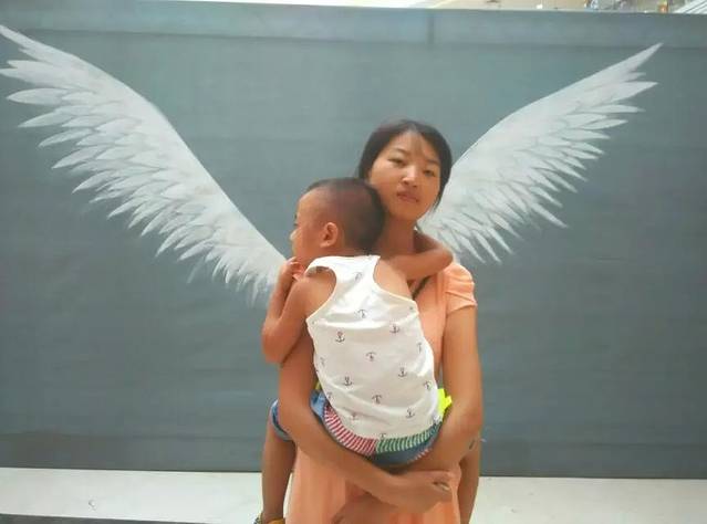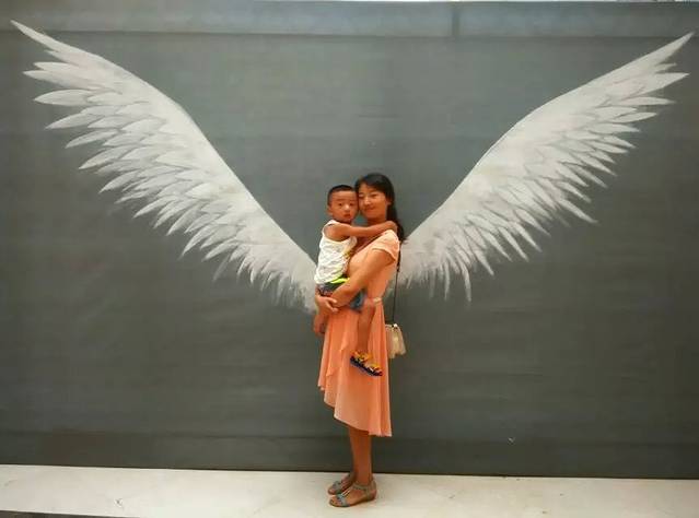 吃完冰淇淋,我们逛商场,哇,这里有一双翅膀,站上去拍个照片!!