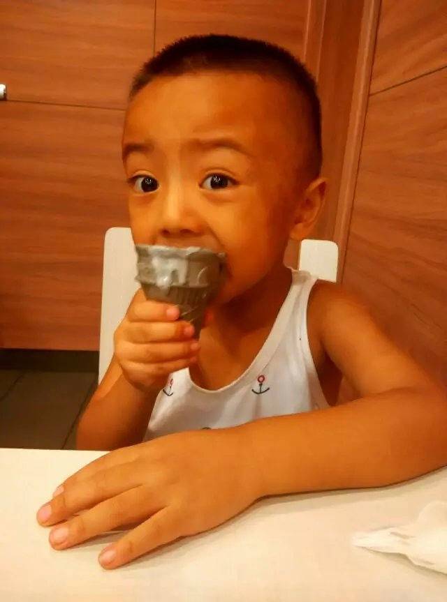 本来,我还想多玩会儿的,被麻麻说去吃冰淇淋,我就屁颠屁颠儿的跟着小姨 去麦当劳!甜筒真好吃呀!小姨一直玩儿手机都不跟我聊天。