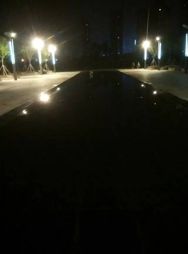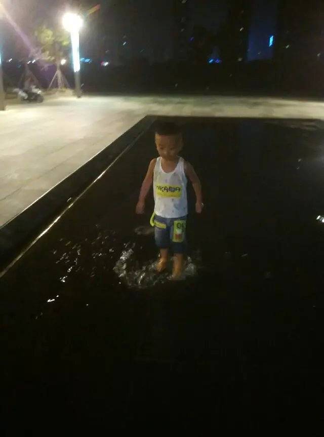 哇,发现一个长方形的喷泉,水面像镜子一样。。。麻麻,我想上去玩儿。。。