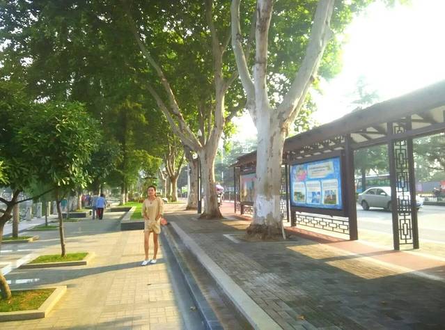 算了,我还没怎么坐过公交车,新鲜一下! 这个站台很漂亮的说。