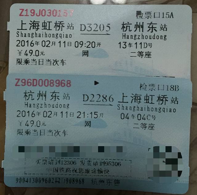 上海虹桥到杭州东的动车大约1小时,费用49元,高铁也可以到达杭州但由于时间一样长,费用要73元,所以我们就选择了动车,到达杭州东后乘坐地铁1号线到龙翔站(6站)C4出口出即可。